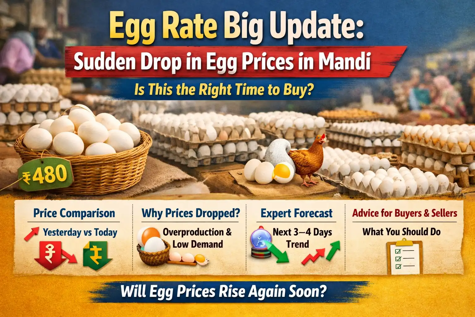 In conclusion, the current dip in egg prices presents a short-term opportunity for buyers, but the market remains dynamic. Keeping an eye on daily price trends and expert insights will help you make smarter decisions in the coming days.